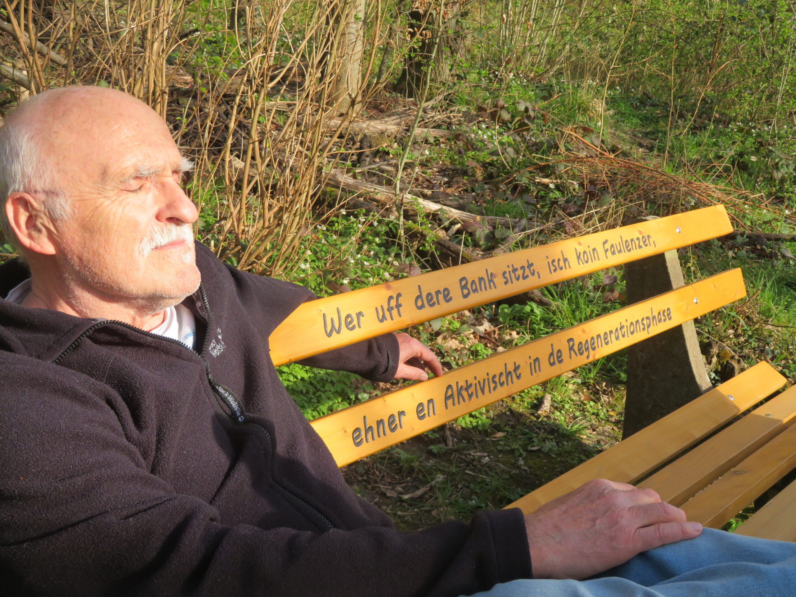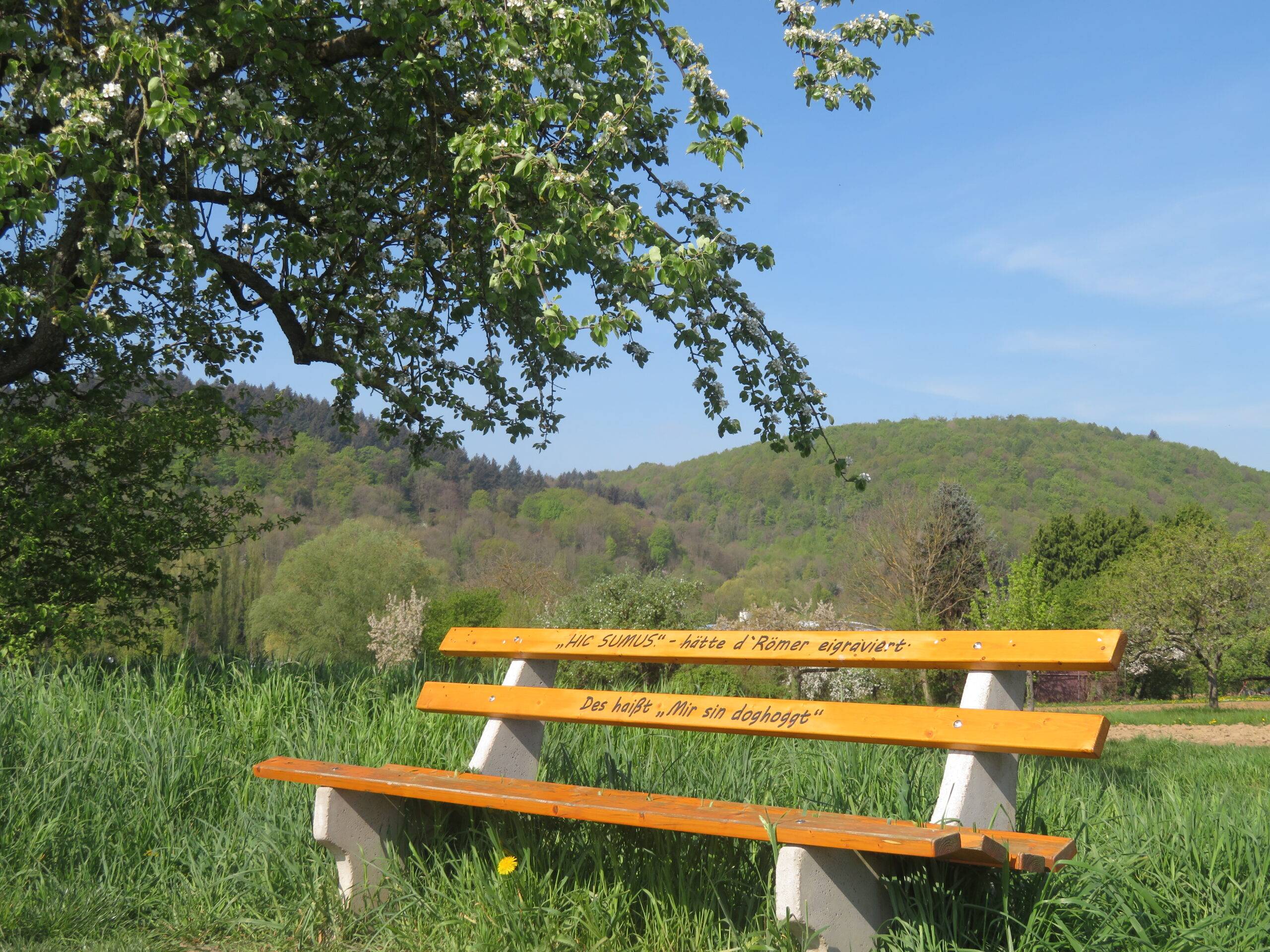 In dene 4 Ortstaile solle an gern uffgsuchte Flecklen beschriftete Bänk zu eme Päusle eilade. Gern a die astänniche Liebespärlen, awwer in erschter Linie alle annere (Natur) -Liebhaber*inne, die mol durchschnaufe mechte.